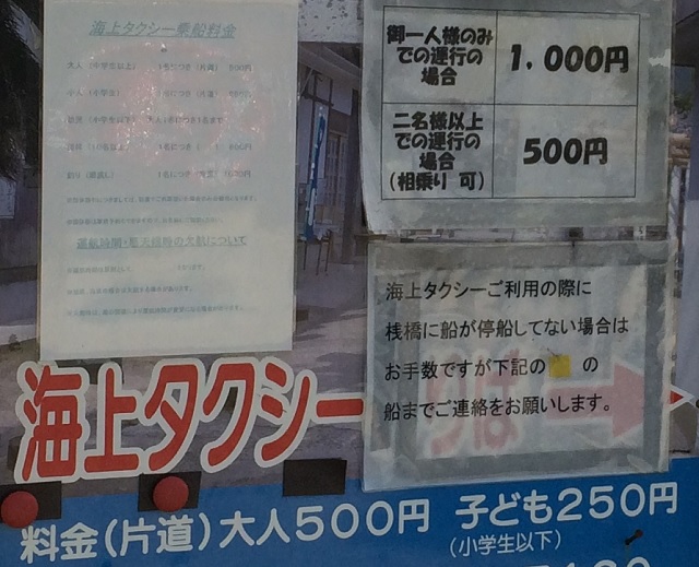 こちらは小型船の海上タクシーで待ち時間も少なく急ぐ方にお勧めです。