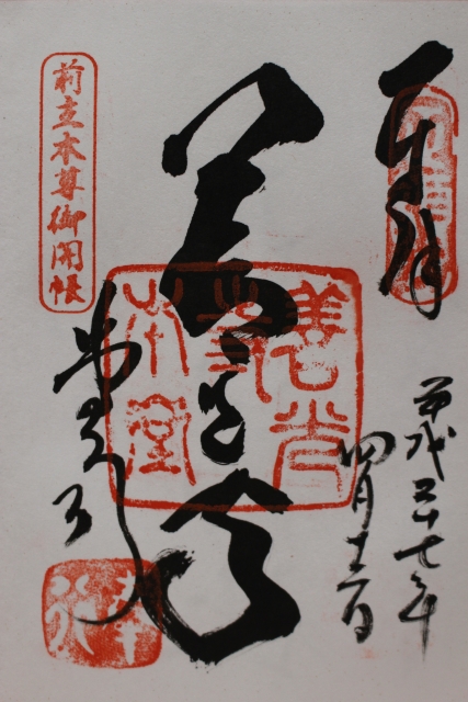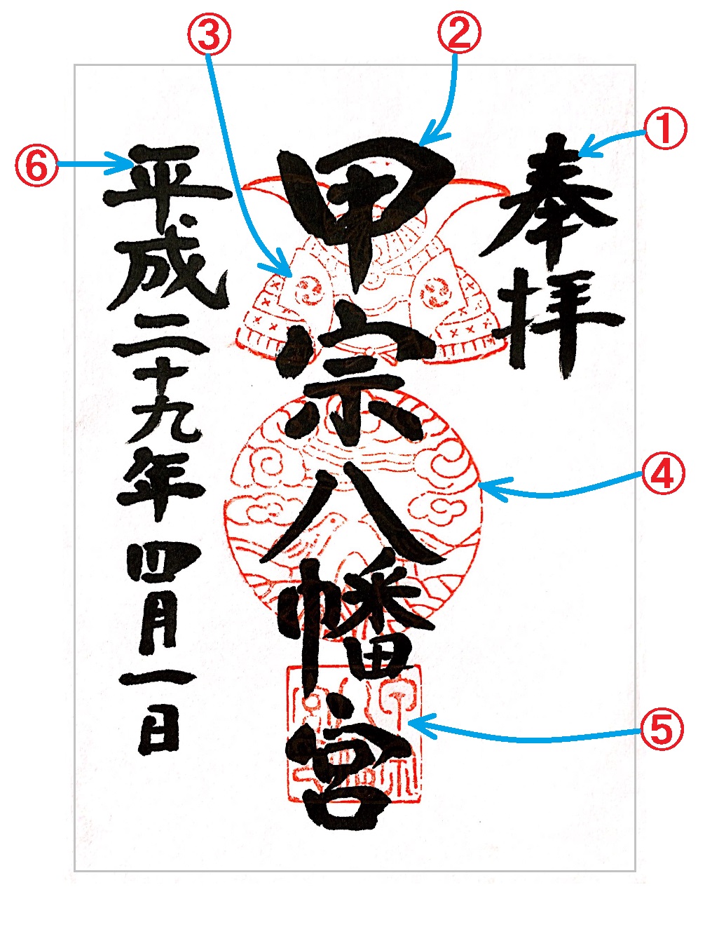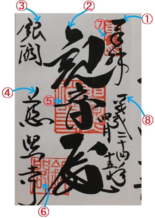 お寺の場合は、右上から左下にかけて3つの印が並ぶところが多いです。